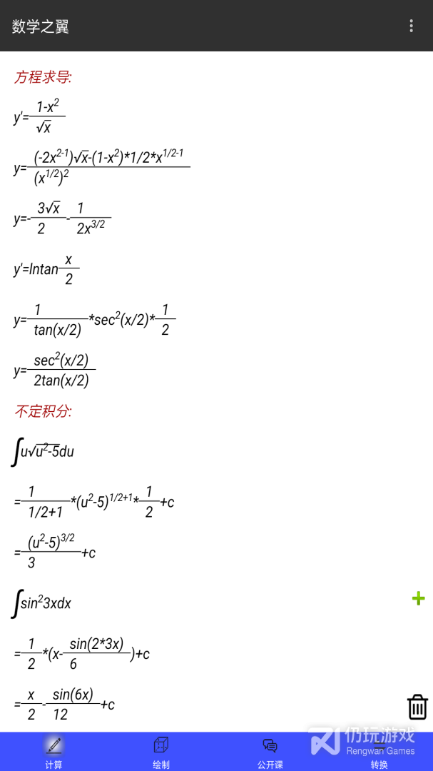 2、数学天堂为小伙伴们的数学学习提供更多便捷服务,让数学公式不再拘泥于纸上~在这里你可以轻松书写方程式,超强数据库支持,各类数学定理、推论、案例也能在这里快速搜索获取,从此搜题更轻松,直接搜索关键词就能得到你想要的题型~各种公式也可以直接在手机上推导出来,为大家的数学学习提供更广阔的领域~
