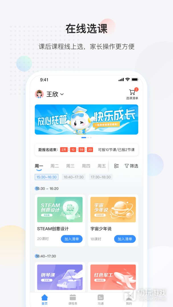 2、放心课App,是由安徽知学科技有限公司开发的课后服务应用,提供了在线选课、课程跟踪、家校通讯等功能,孩子上课家长了解全面,丰厚课后生活,有效提高孩子的综合素质