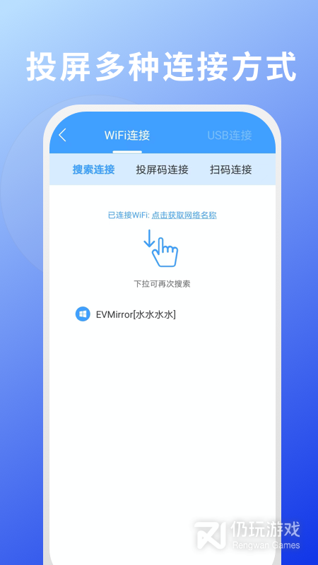 3、电脑和手机同时打开EV投屏,两个设备需要处于同一个WiFi环境下。