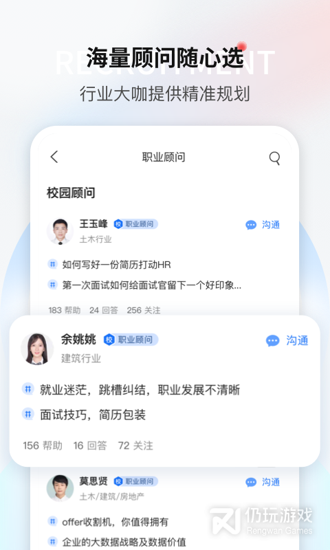 【职业顾问】根据个人困惑选择相匹配的顾问,在线获得个性化指导;