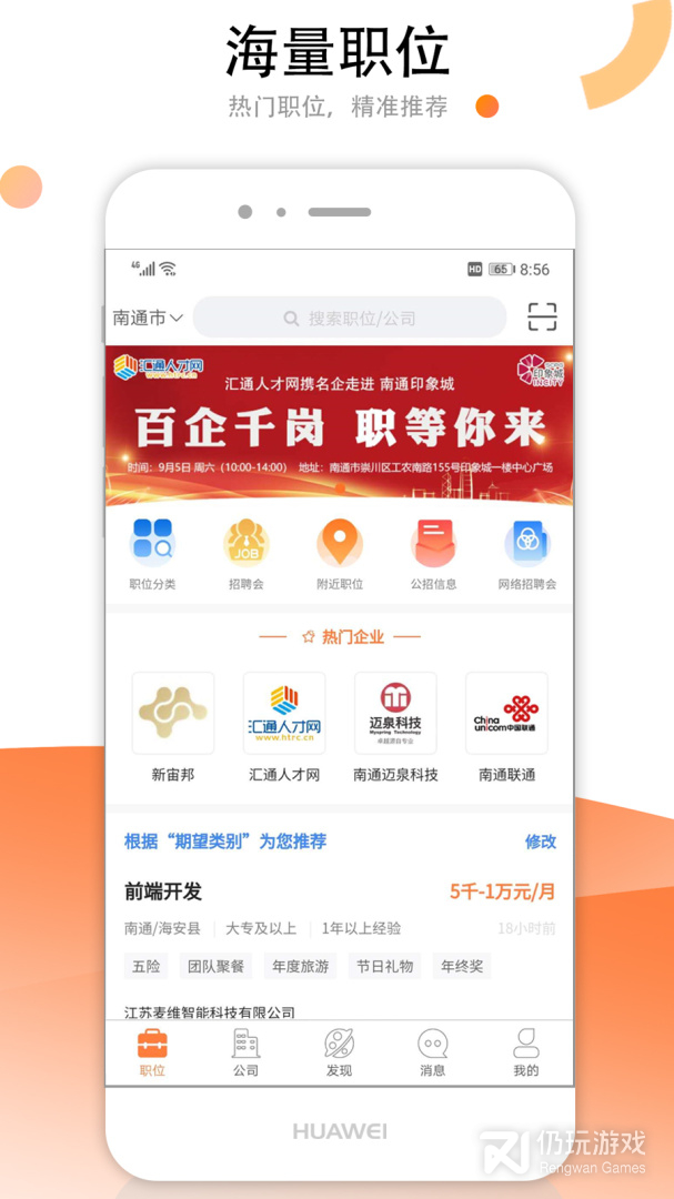 【职位更全面】日均在线职位十万以上,南通求职一站式。