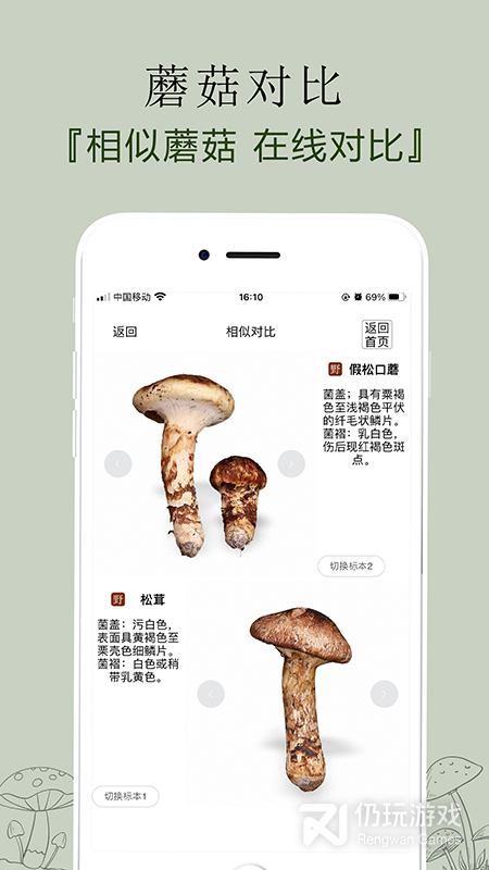 1、也就是让你通过手机拍照,对比素材库的方式快速认识一种菌菇,从外形到生长环境,从药用到食用都有比较详细的介绍,感兴趣的快来下载吧