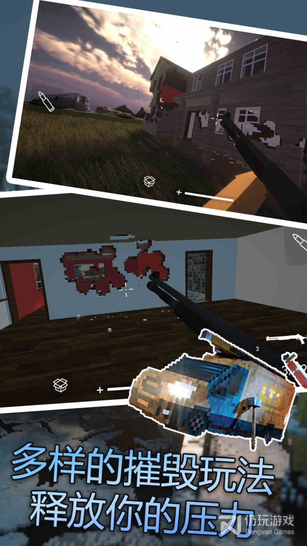 -游戏方式加你单,使用枪械或者物理的方式开始破坏,还可以用机关枪扫射,丰富道具挑选,破坏这个房子;