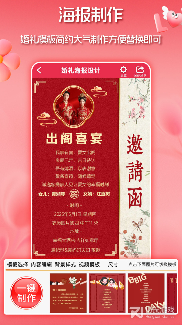 1、在这里拥有多种电子请柬模板,拥有请柬商城,能够帮助用户随时选择使用,随时添加结婚照片,进行电子请柬的制作,操作方法简单,花样多,制作价格优惠,需要的伙伴,可以来使用哦