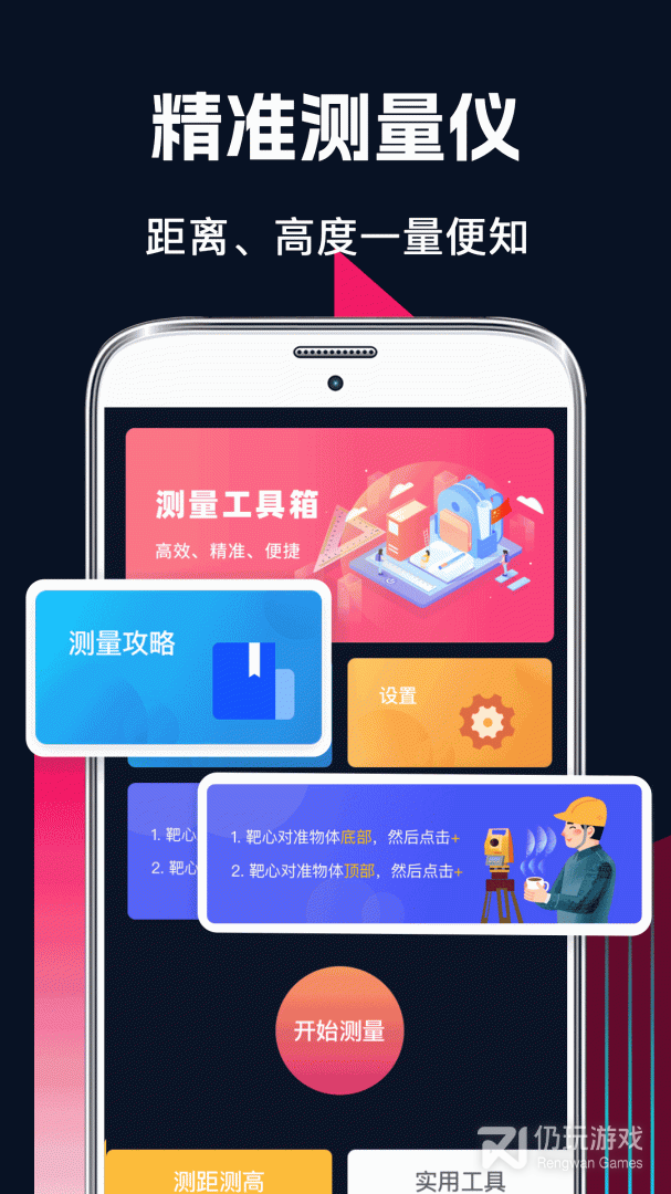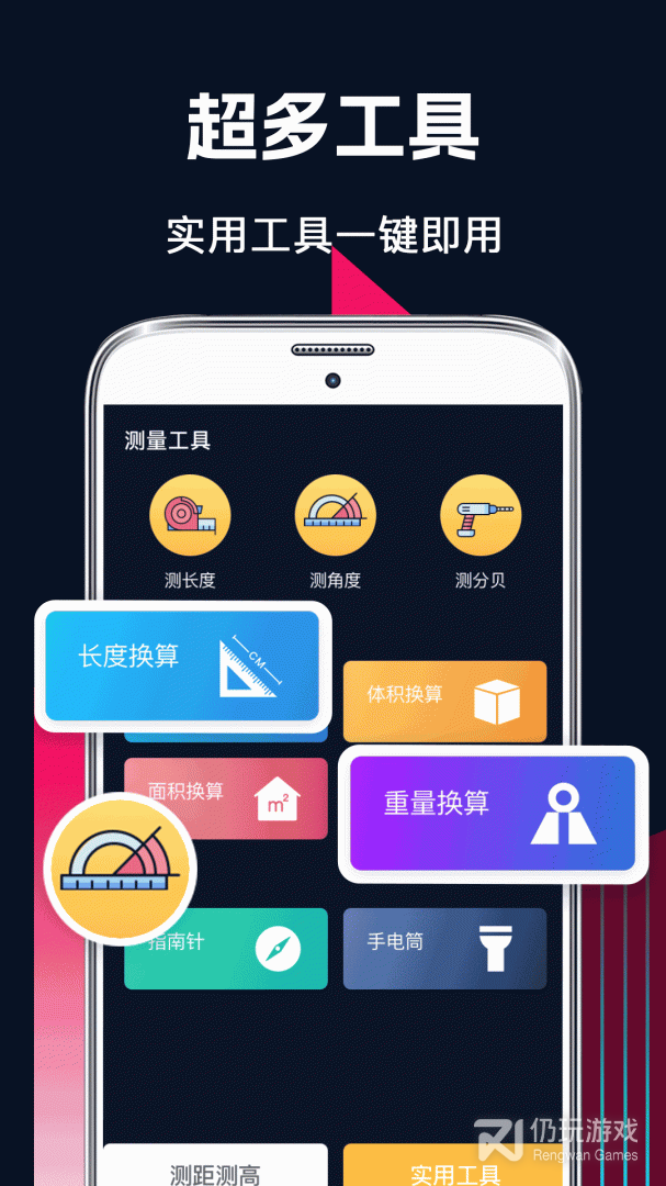 3、多功能测量工具app,多种手机测量工具免费使用,内容齐全,操作简便,轻松解决生活、工作、学习中的测量问题,精准测高度、噪音、方向、角度,方便又好用