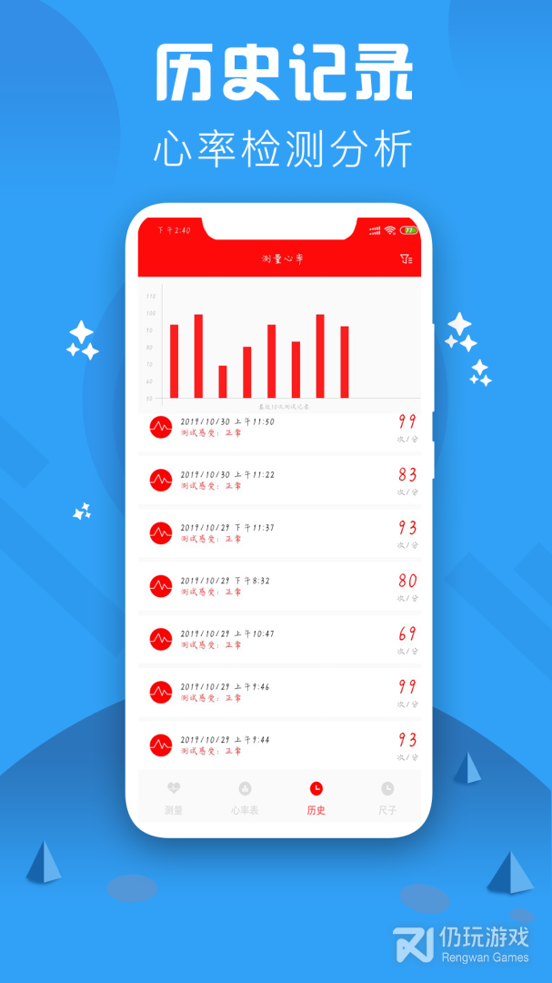 1、心率检测仪,通过这款软件可以帮助用户去轻松检测你的心率,平台上面有十分详细的使用图文教学提供给大家,所以用户只要跟着走就可以了,操作还是很简单的,用户测量之后,平台上面还会为用户去提供相应的测试报告,同时自己之前的测试记录也可以在这里看的到,有无异常一目了然