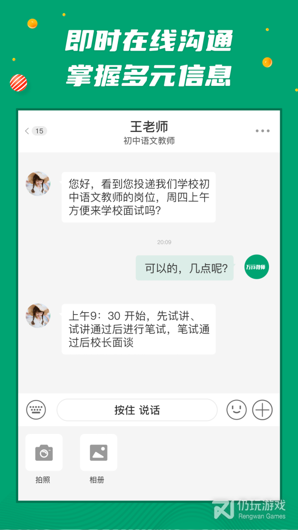1、万行教师招聘端即时在线沟通,掌握多元信息