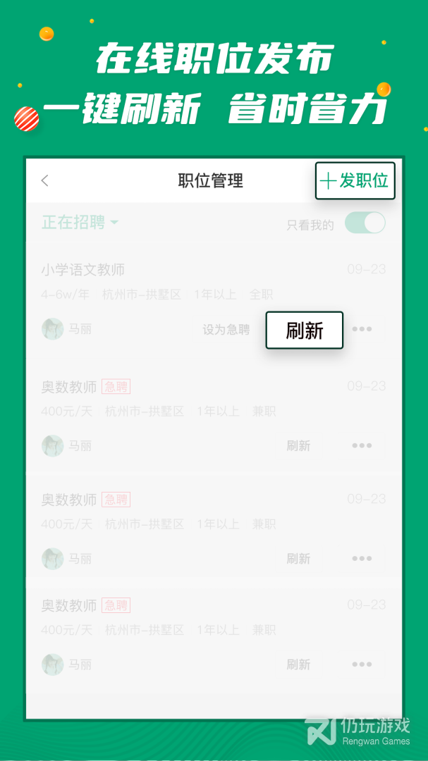 【职位发布】在线发布职位,一键刷新,省时省力,