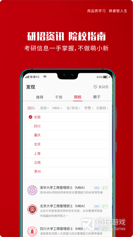 1、品睿MBAapp,MBA英语考研教育平台,精选丰富考研课程,了解最新考研资讯信息,提供全面的院校信息,为用户带来更优质的考研服务,考研学习更轻松