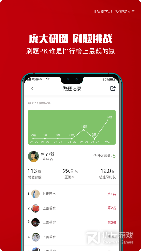 5、根据答题排行,轻松掌握学友圈的做题排名情况;