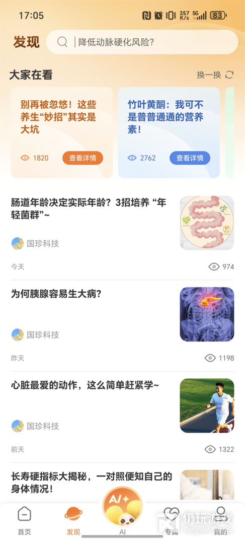 3、国珍健康实时监控你的健康生活,掌握你的健康动向,给出你的健康建议,可以说是你的养生路上最好的小帮手了