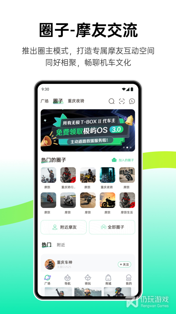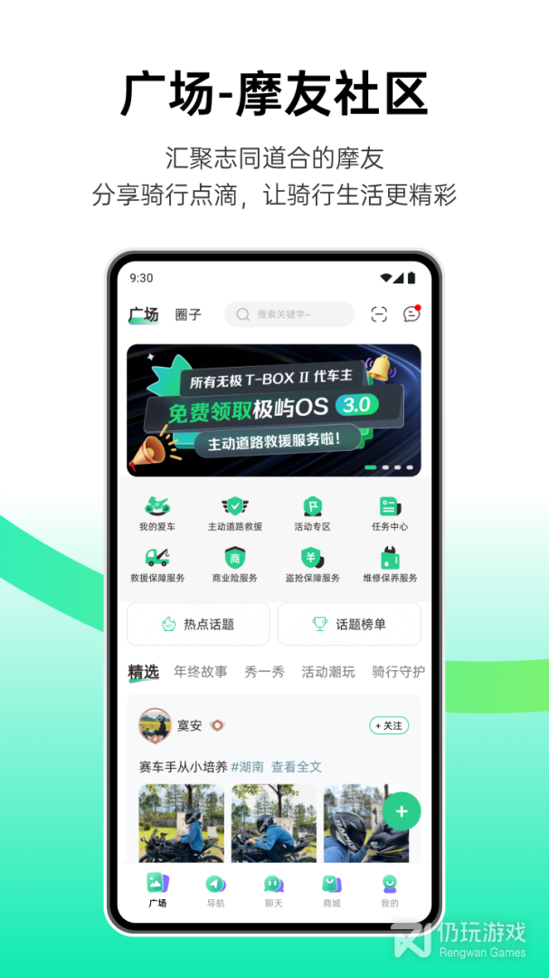 这里有你熟悉的语音聊天,还有出行导航。通过即时通讯为纽带,串联起出行中导航、吃、住、行、玩、资讯分享等各种应用场景,使用蓝牙手持设备与APP连接后,可以遥控选择联系人聊天、拨打、接听电话。遇到危险紧急求助,让沟通更愉快。