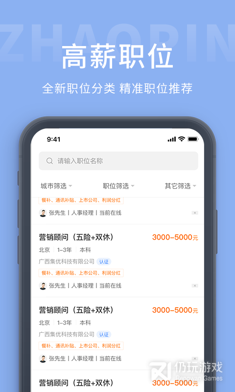 2、软件里面汇聚了海量精选优质的工作职位资源信息,各种各样的岗位应有尽有,用户们可以根据自身的条件在线查找,里面所有职位都是竟敢严格审核真实有效的,可以放心在线咨询投递