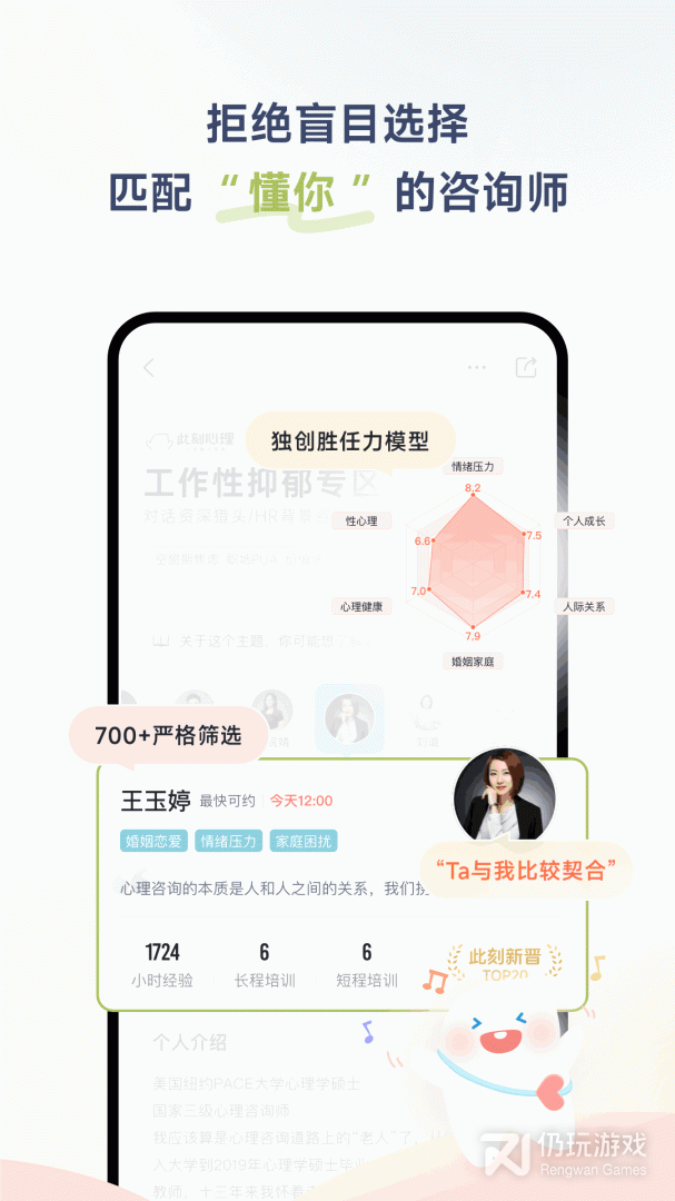 4、预约咨询情绪困扰、婚恋情感、人际关系、亲子教育、个人成长、职场、心理健康等,多个方面为你提供专业心理支持