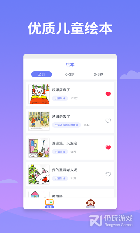 2、绘本多多是专为幼儿打造的早教启蒙类绘本阅读软件,根据年龄选择适合宝宝的绘本,类别齐全,包括儿歌、动画、亲子游戏等等,内容非常丰富
