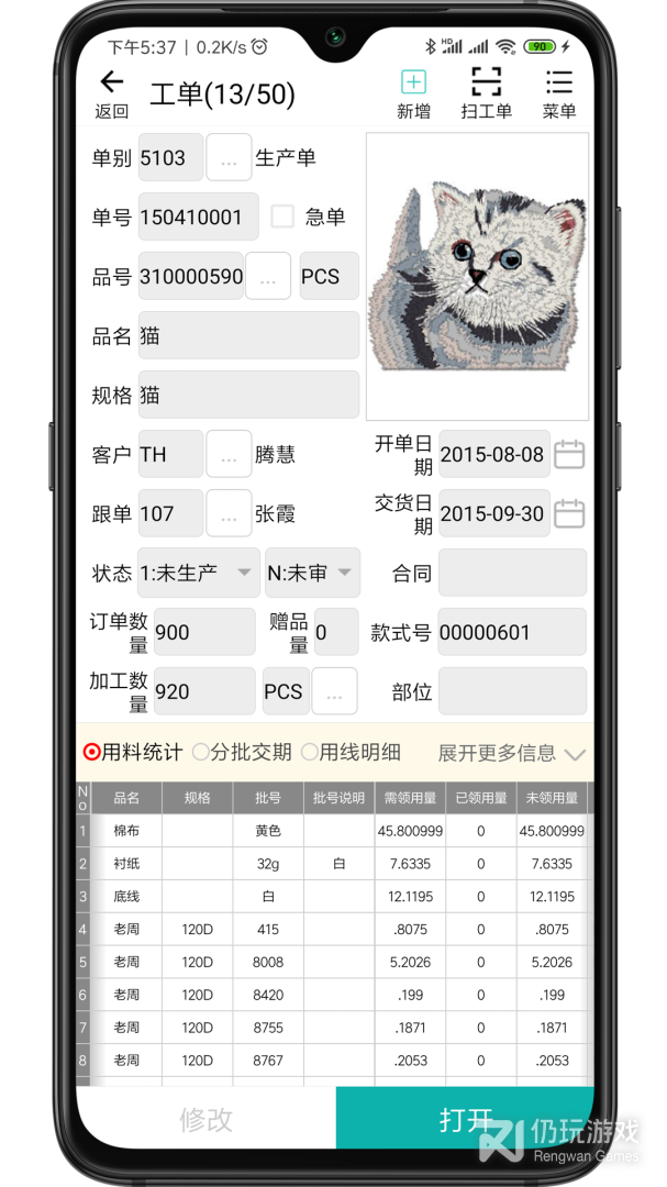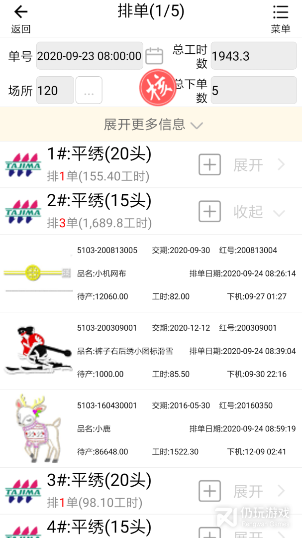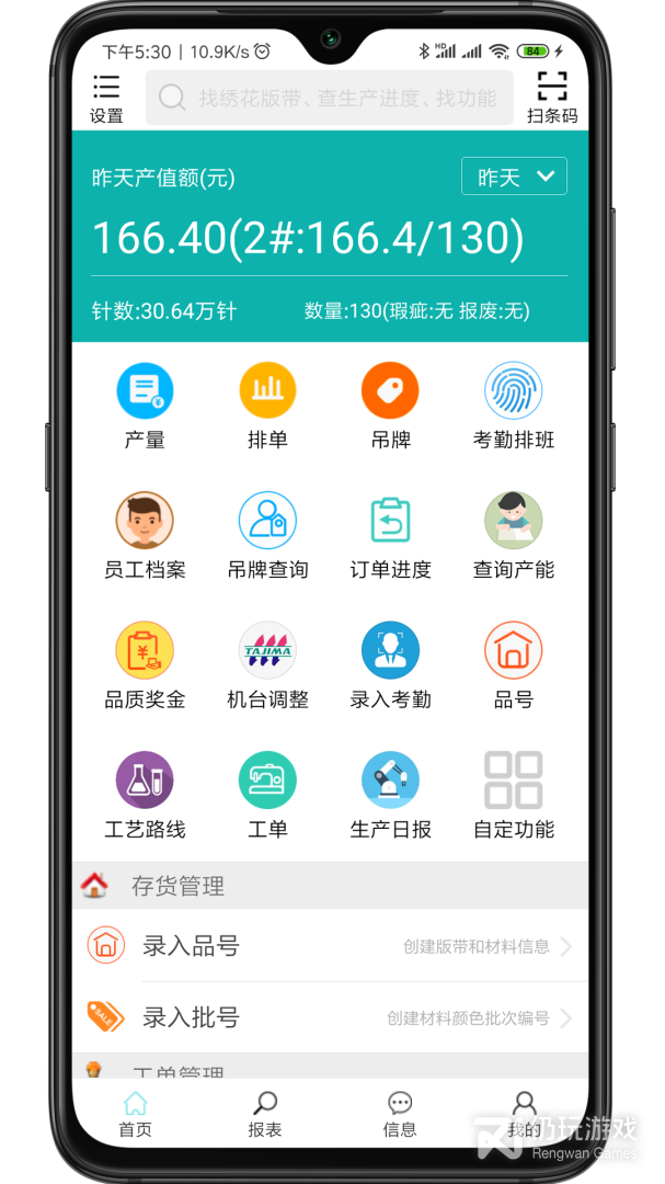 2、这对绣花行业打造的移动办公软件,绣花ERP提供了很多丰富的功能,查看产量、排单、吊牌、工单等,实时更新库存,提升效率