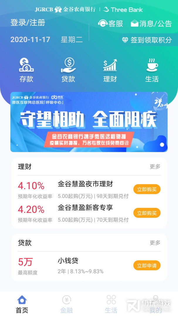 金谷农商银行Three Bank云端金融是金谷农商银行着力打造的互联网线上金融创新服务,随时随地免费开户、转账、理财、储蓄。为互联网客户带来便捷、轻松的互联网金融体验,多重的安全保障机制,让客户财富不断增值,畅享互联网金融时代。