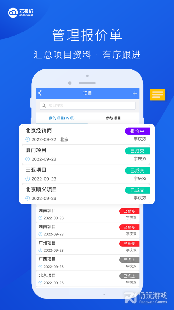 3、是个实用性强的云办公平台。通过云报价你可在线报价、管理项目信息,以及了解报价明细等