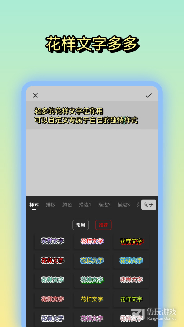 4、渐变、荧光、描边、阴影、切割…你能想到的,你想不到的文字处理效果我们都为你提供了,充分发挥你的创意,各种酷炫的文字效果等你来创作,你就是社交平台上最有格调的仔~