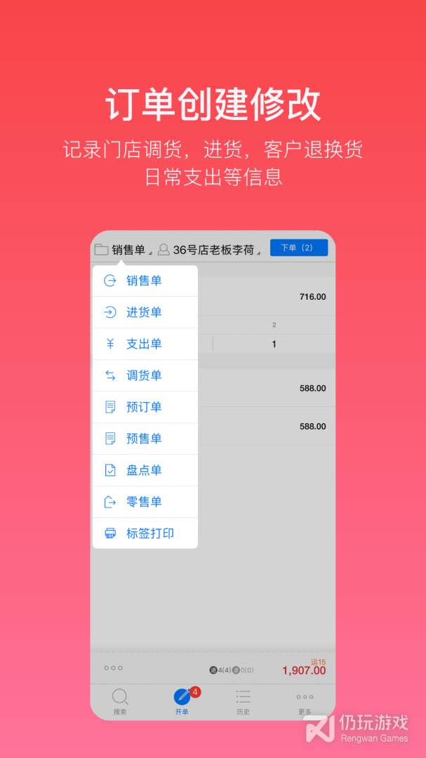 2.通过图片搜索和货号检索查找商品更加便捷,提升手机开单打印速度;