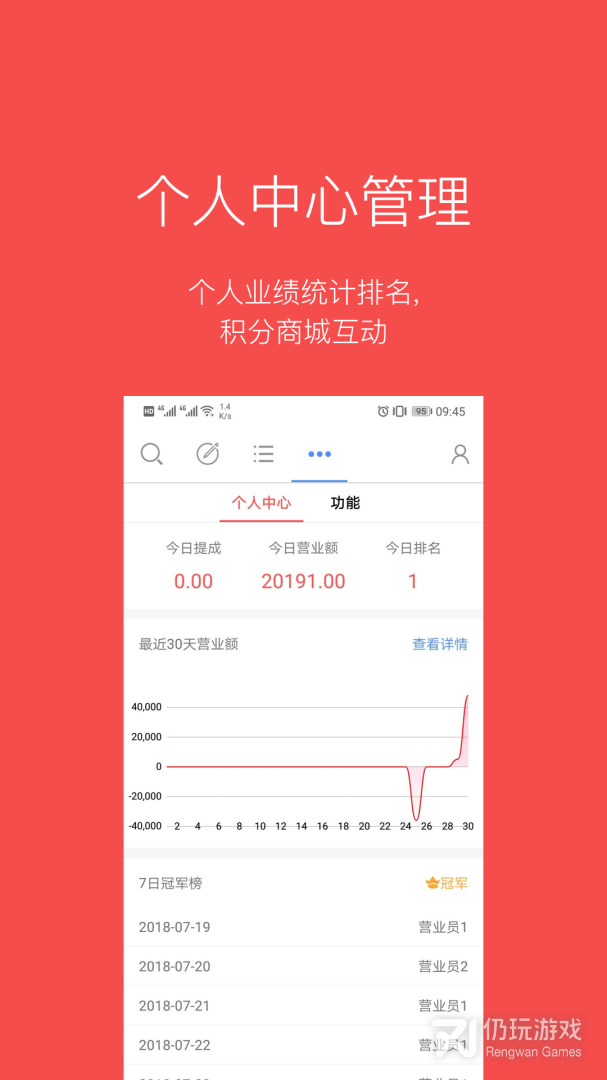 5.个人业绩统计、积分商城活动等功能为员工提供更多参与感,让管理更高效。