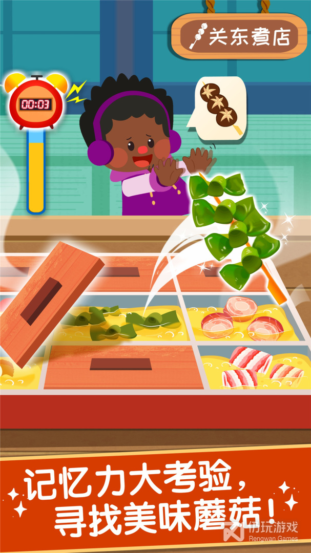 6、欢乐烧烤,施展厨艺。打包糖果,强化逻辑思维,九宫格关东煮,提升记忆力