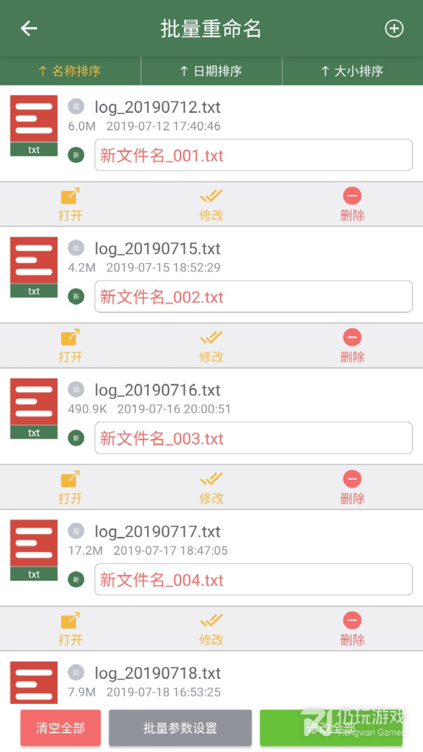 2、想要对你的文件进行重命名,但是一个一个修改又太麻烦?今天小编给大家带来的这款批量重命名助手APP能够帮助大家,一键添加多个文件内容,批量进行重命名,非常简单方便,除了改名字之外,前缀、后缀、扩展名等等也可以一键替换