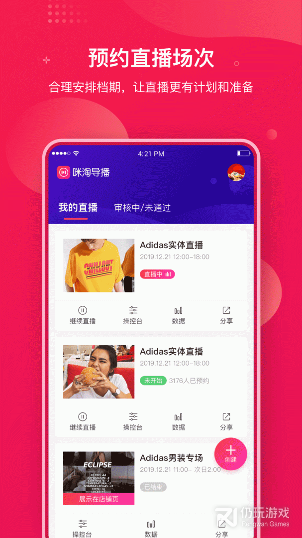 3、主播借助当前平台,还能合理的安排档期,从而做出更好的准备,甚至能够直接把直播分享到微信。