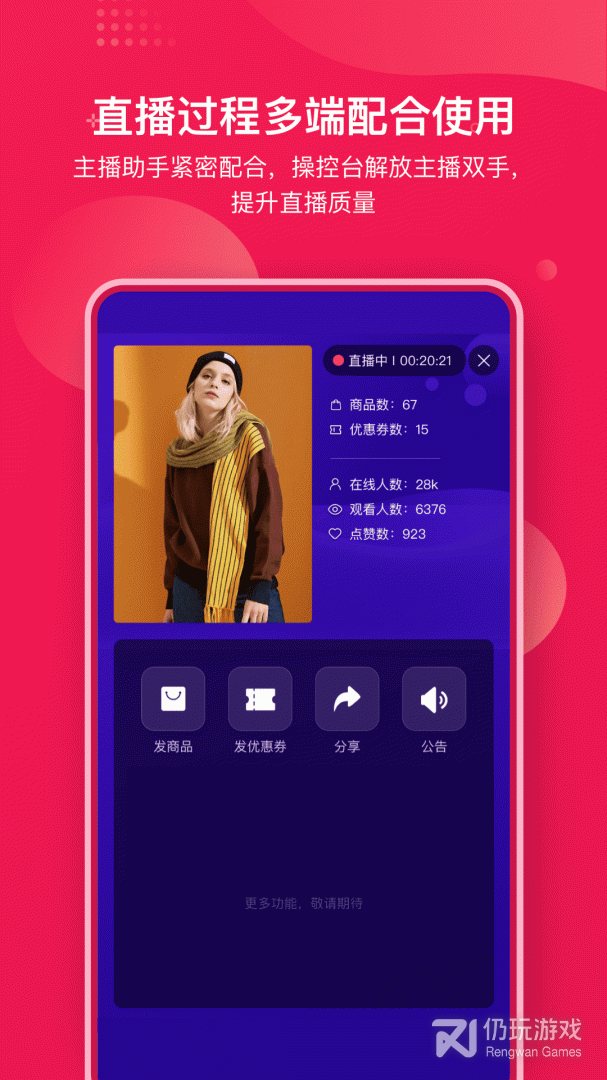 1、主播可以在这个平台展示商品的详细内容,用户可以在这里看到商品的真实感受,还有很多的优惠券也能免费领取的,同时软件还内置了商城服务,看到喜欢的商品还能直接进入链接通道下单购买,非常便利