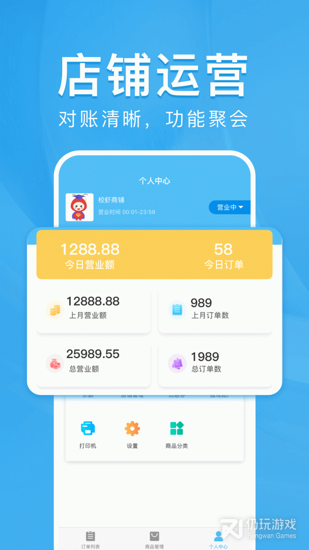 3、用户可以通过这款校虾商家版来在线进行店铺的管理,软件会帮助用户自动开单接单,打印小票,快速处理各户的订单,还可以在软件的设置中自由的调整店铺的营业时间