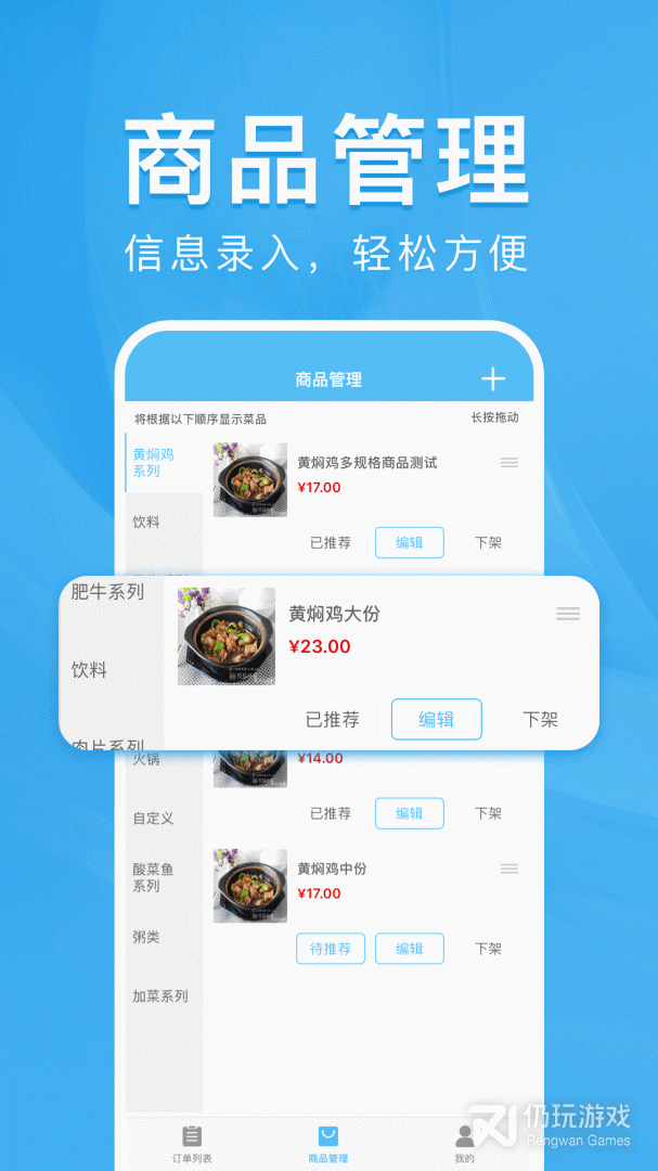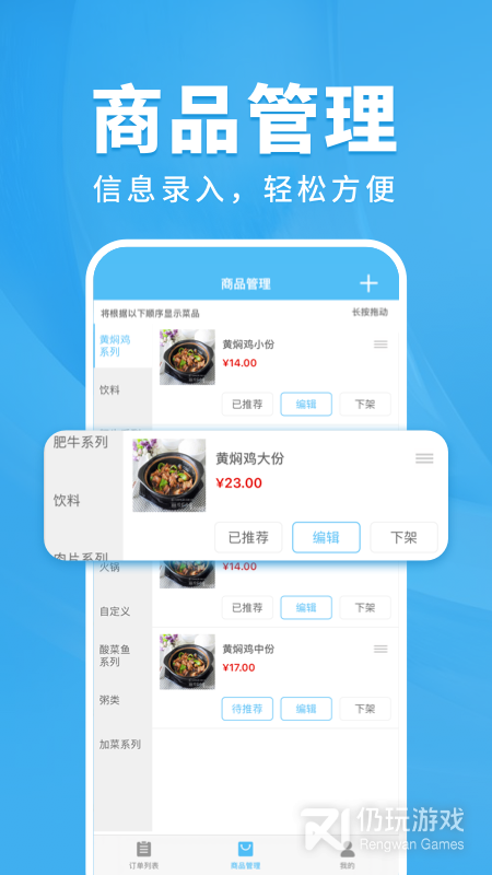 2、商家们可以在这里创建自己的店铺,编辑店铺的资料,还能更高菜品的分类,为你的商品进行编辑使用,可以供顾客挑选与点餐,商家直接就能在后台看的到,一起来看看吧