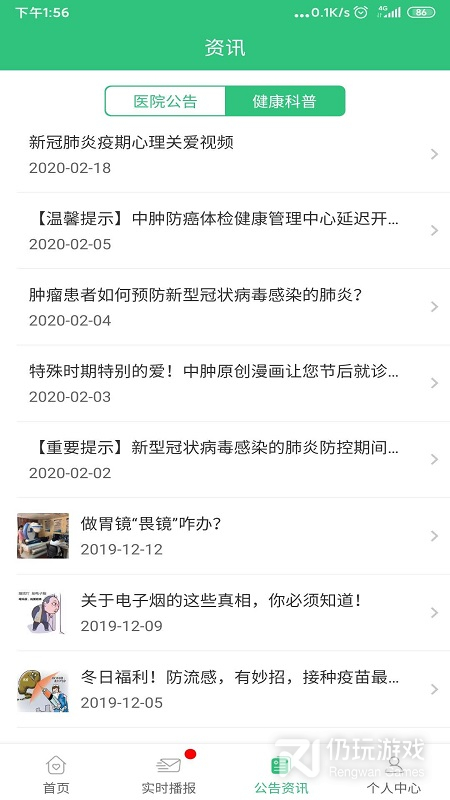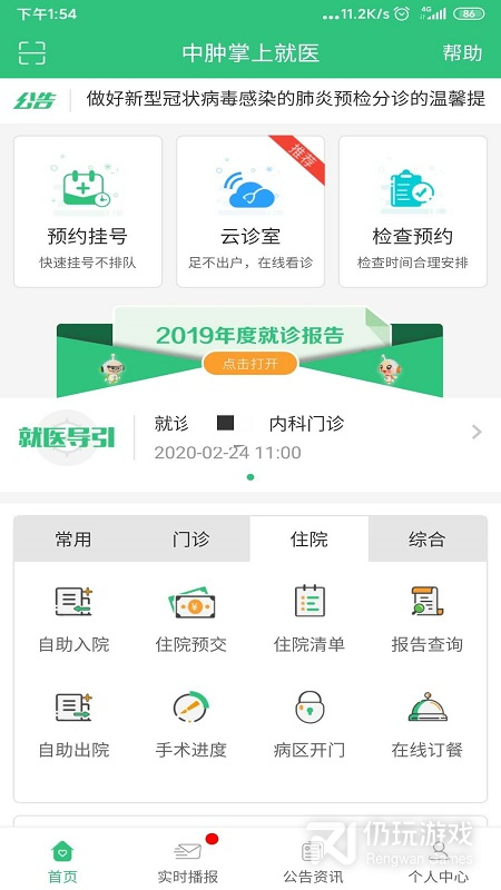 2、为广大患者提供便捷就医的软件中肿掌上就医带给大家,着开软件有着很多的功能,用户可以通过这款软件来线上预约挂号、查看叫好单、缴纳医疗费用、查看检查结果、诊疗卡充值、就诊记录查询等多种内容,并且用户还可以通过软件来看到医院最新的通知消息哦