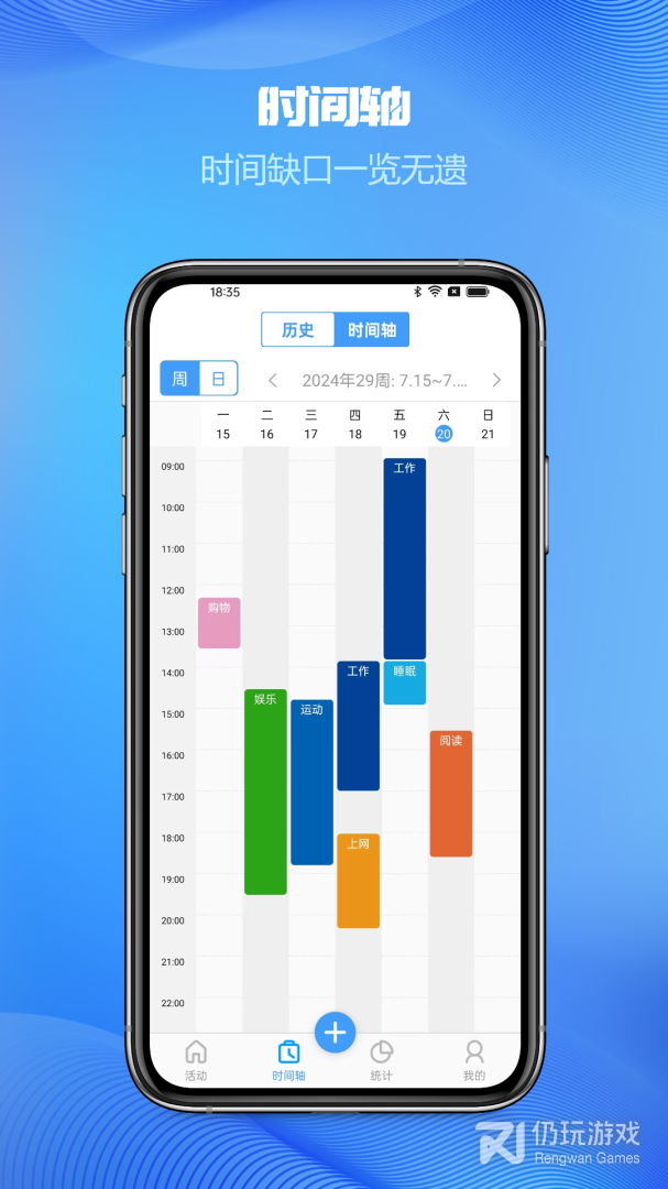 3、用户使用该软件可以记录好自己每日、每周和每月的时间统计,来为用户分析时间的使用情况,让用户了解到自己的时间都花在了什么地方,以此来帮助用户能够更好的对自己的时间进行规划管理