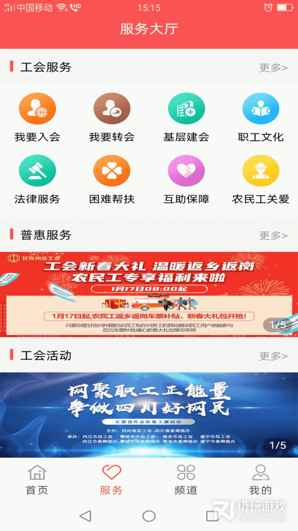 由四川省总工会新建的川工之家APP上线已久,打开APP点击“服务”进入“服务大厅”即可享受职工专属福利,不用跑前跑后线上就能完成入会、帮扶、保障等工作不用左看右看线上就能知晓招聘、维权等重要资讯, 还有图书阅览、丰富普惠、幸福女工等十余项工会服务总有一些你需要。