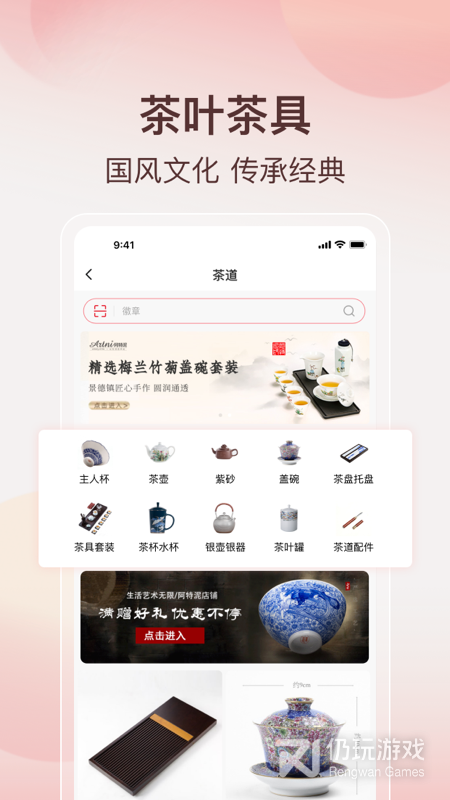 文创、生活+、茶叶茶具、小叶紫檀、全屋家具、艺术品6大核心版块!直播互动、超值拼团、限时抢购玩法多多!