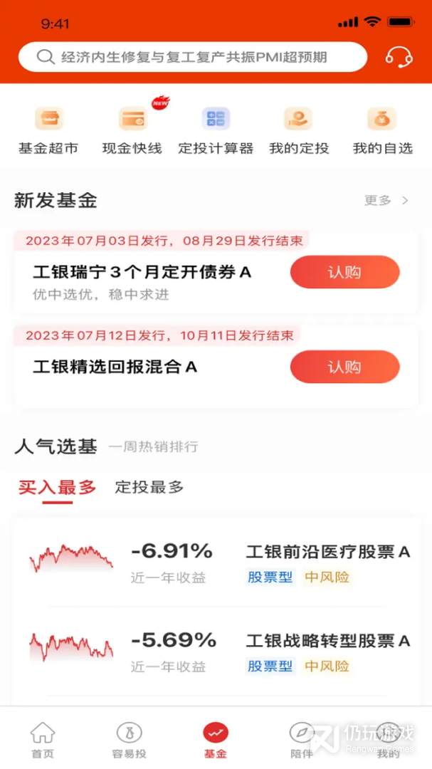 1、工行旗下的所有基金超市,给您全方位的选择。根据自身情况进行基金产品的认购和申请,每款基金还可查看净值和详情信息。