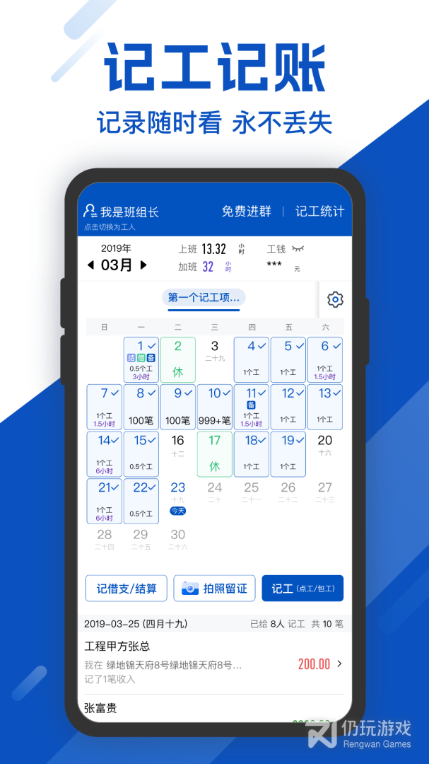 1、它能免去你再用手写记账的方法,让你更好的对工地的工人进行考勤,这款软件会让你免去很多的烦恼,是一款对于在工地的人来说非常棒的软件,喜欢的话那就不要错过,快来快来下载工地考勤吧