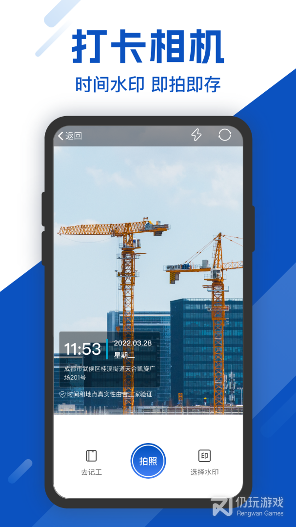 2、打开工地考勤app就能快速进行考勤打卡,工地考勤省去了很多不必要的麻烦