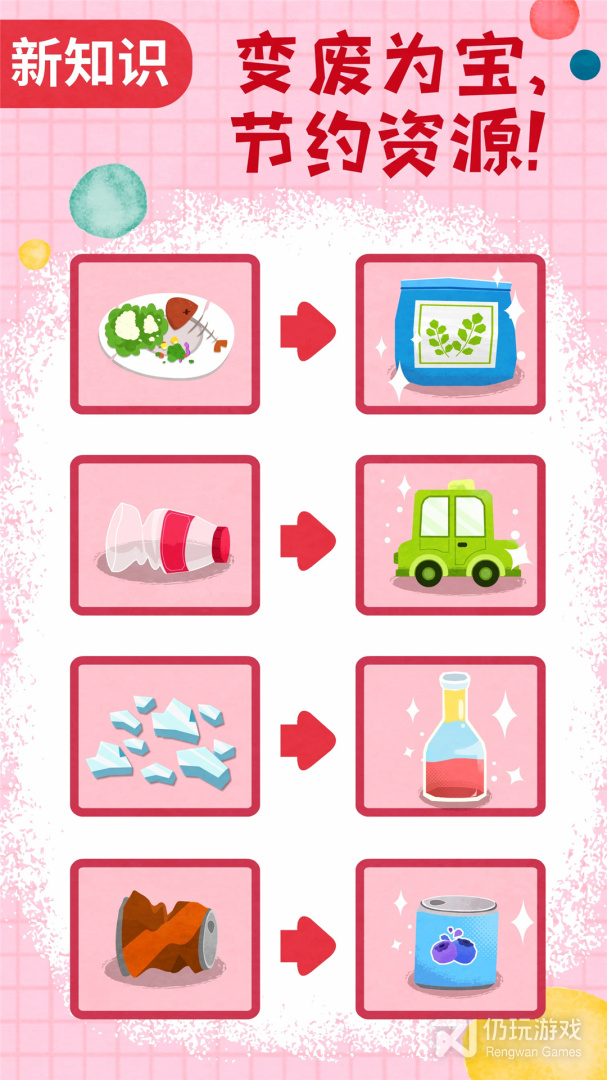 2、下载宝宝垃圾回收app,教宝宝们保护环境从小做起,培养宝宝的爱心和良好的卫生习惯