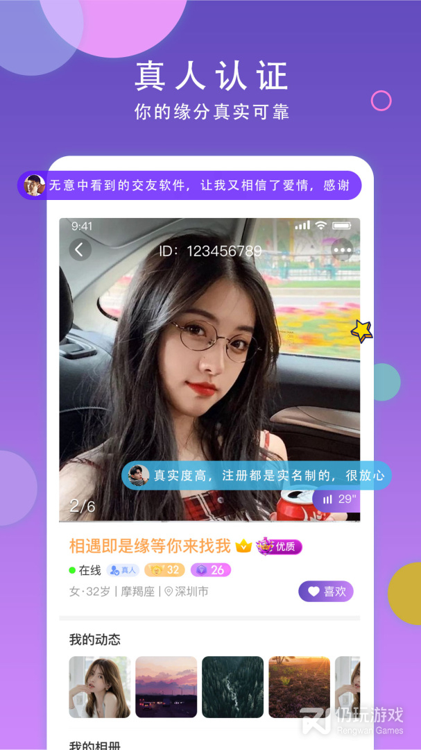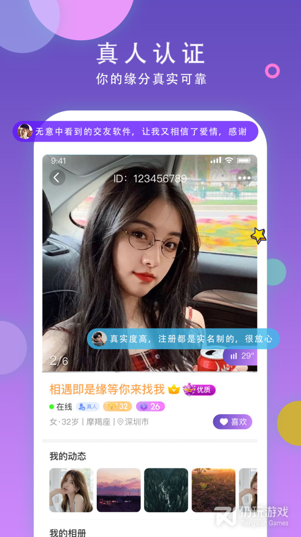 1、都是需要经过真人认证,很安全的交友方式,真实的实名信息