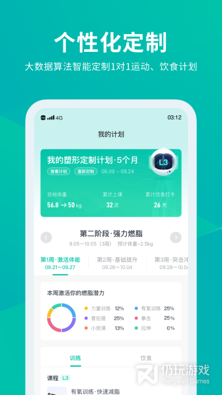 3、定制计划,定制用户的需求计划,按照自己的健康需求来调节计划管理