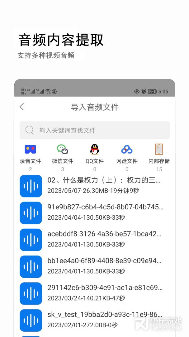 4、多种类格式的文件都可以进行扫描,录音、微信、网盘、内部存储等