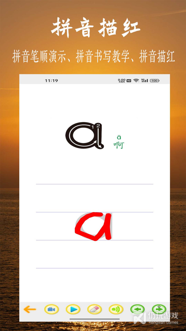 1、拼音描红。手把手教你写拼音,可动态演示如何写拼音