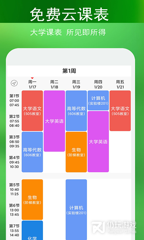 打开课程表可以查看全周或者全学期的课程,让你的学习&生活更加便捷