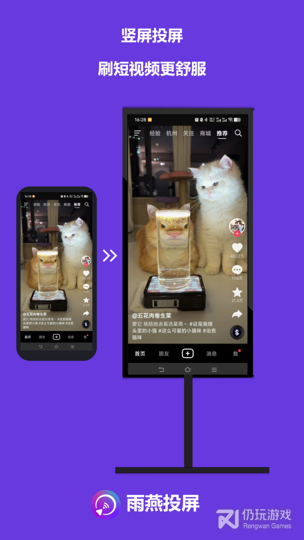 3、这款投屏工具能够让用户将手机投屏到电视上面,让用户能够随时的在电视上面观看你手机上面的内容,通过投屏让你能够观看别样的内容,将手机和电视链接成为一体,喜欢的话就快来下载这款雨燕投屏