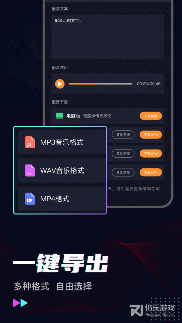 4、一键配音:所有配音内容,一键导出至U盘,循环播放