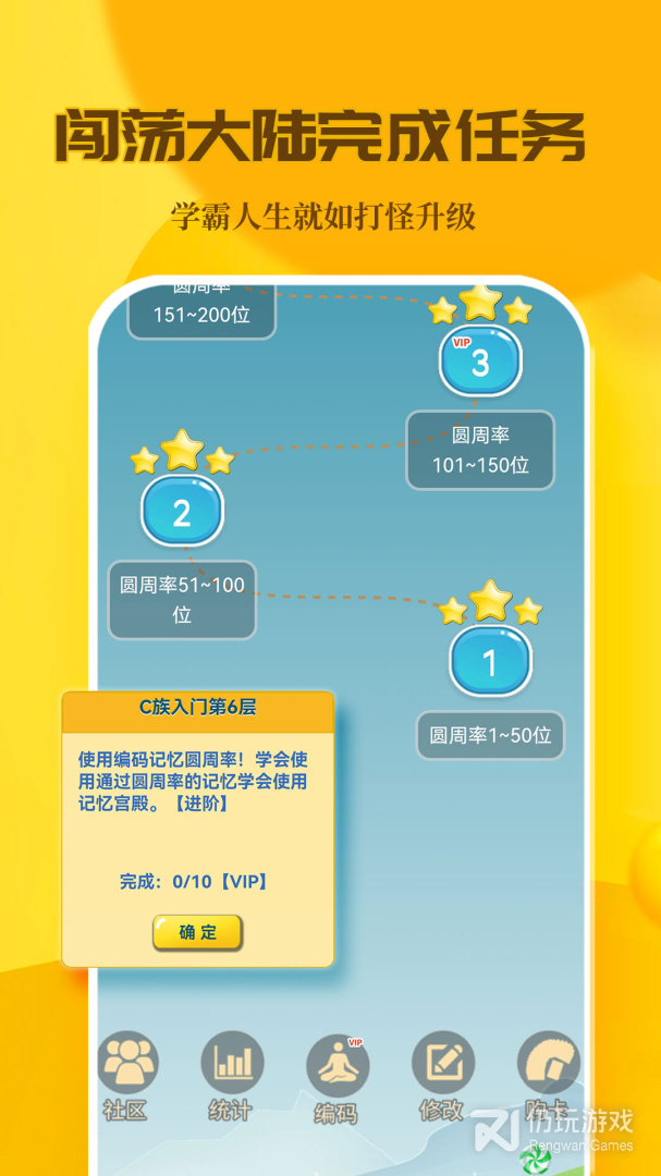 1、我们人生当中有过很多种训练,接下来要为大家推荐一款特殊的训练,那就是记忆训练,C族记忆宫殿,它是一款记忆辅助软件,通过在大脑中建立构建一座记忆宫殿,软件中提供圆周率记忆训练,扑克牌记忆训练,英语单词记忆训练,可自定义编码、自定义选关,使用番茄工作法进行修炼