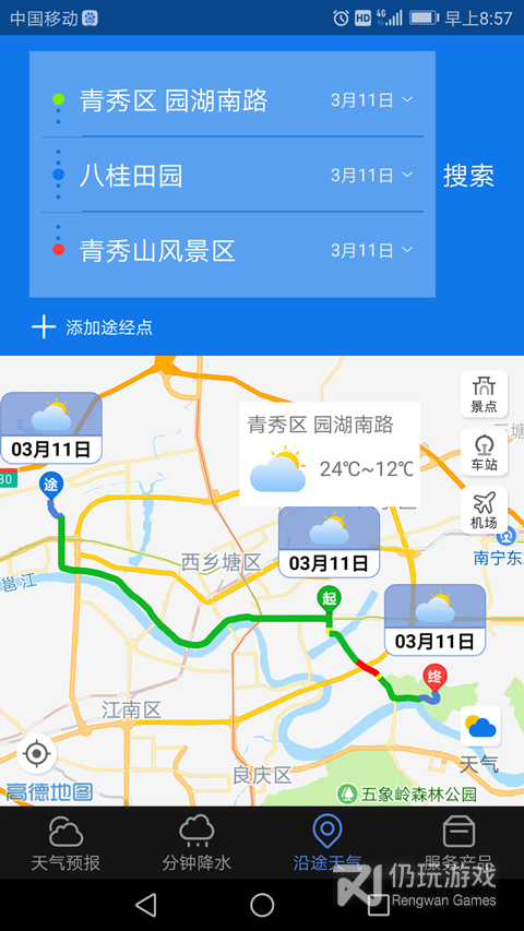 2.给你带来沿途的天气变化,输入旅行目的地和目的地,查看沿途的天气数据。