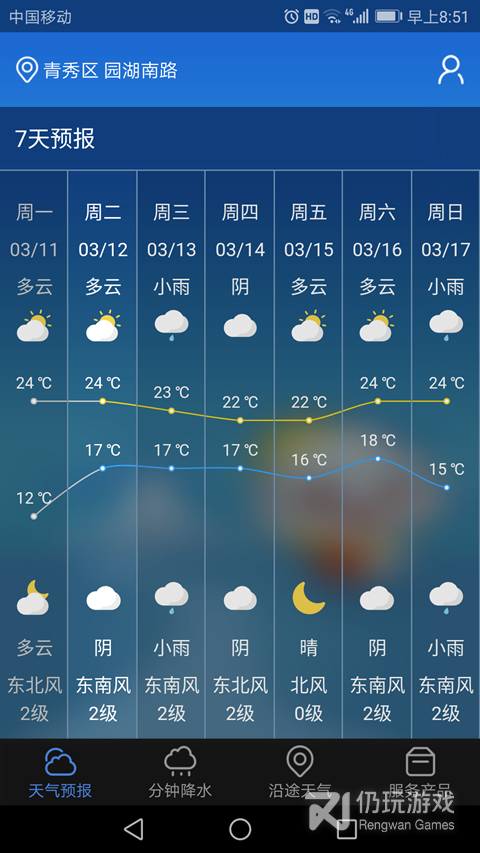 3、能够关注到今天的天气变化趋势,早上和晚上的温度差别也可以早点知道。