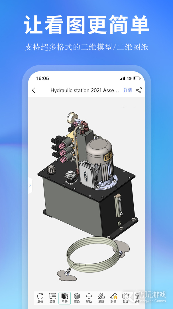 2、思联三维看图,允许在手机上查看3D图像,它特别适合工程师在现场显示机器设计和图像,您不仅可以浏览图像,而且该软件还支持测量,更改零件和其他操作的间距,使每个人都不必磨损它们,赶时间时,您可以携带计算机并取出手机